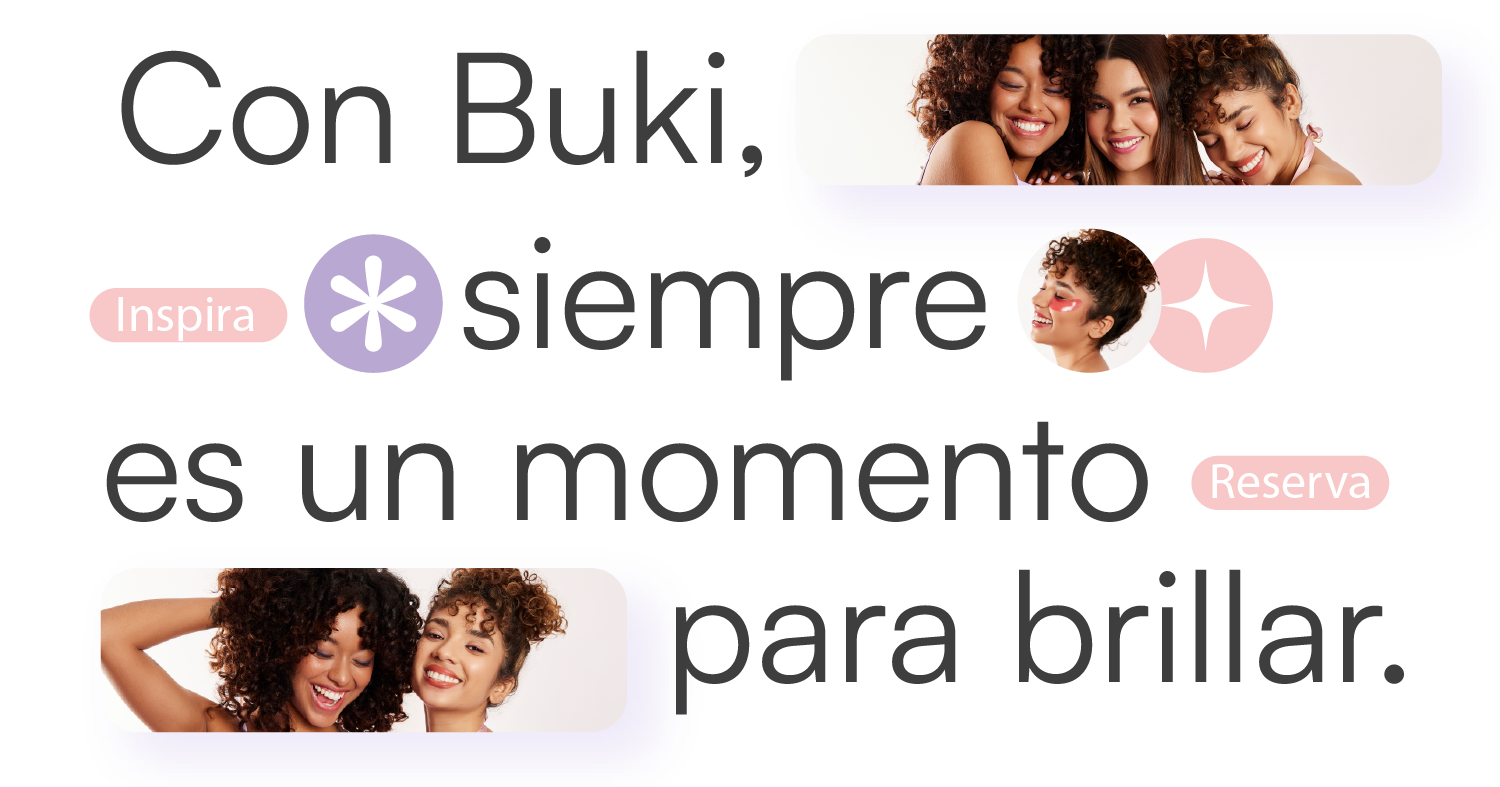 En Buki, hacemos que encontrar servicios cercanos, realizar tu reserva y concretar esa cita especial sea más fácil que nunca. Todo desde la palma de tu mano, sin complicaciones, cuando quieras y donde quieras. Queremos ser esa aliada que siempre está ahí para ayudarte a brillar.